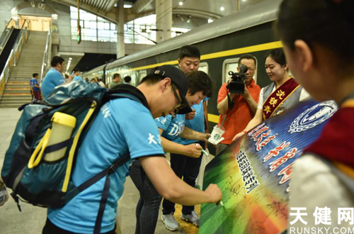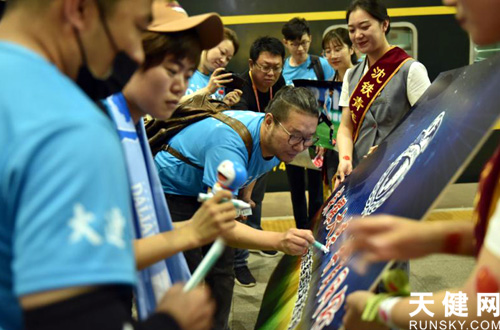 站前签字留影,热情的球迷们搭乘“球迷专列”到廊坊呐喊助威