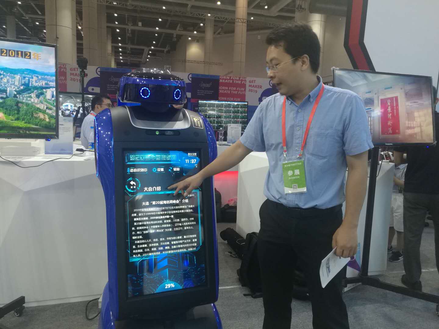 旁边展台的中等身材大小的政务机器人,可以像个随行助理,安置在行政大厅,不但可以解答市民咨询的政策、需要筹备的材料等,还可以一路跟随前来办事的市民,随时用语音进行回复。除此之外,机器人还具有人脸识别和记忆功能,可以继续处理市民上次未办完的事,无需重头来过。