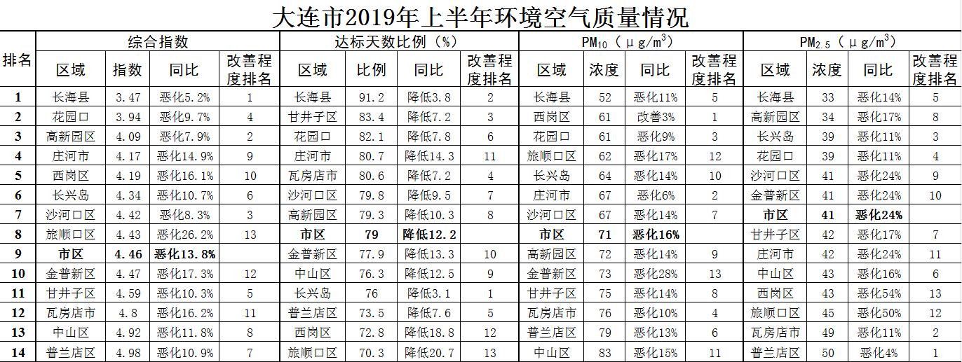 【大连环保发布】上半年空气质量榜单出炉 看看哪个区空气最好?