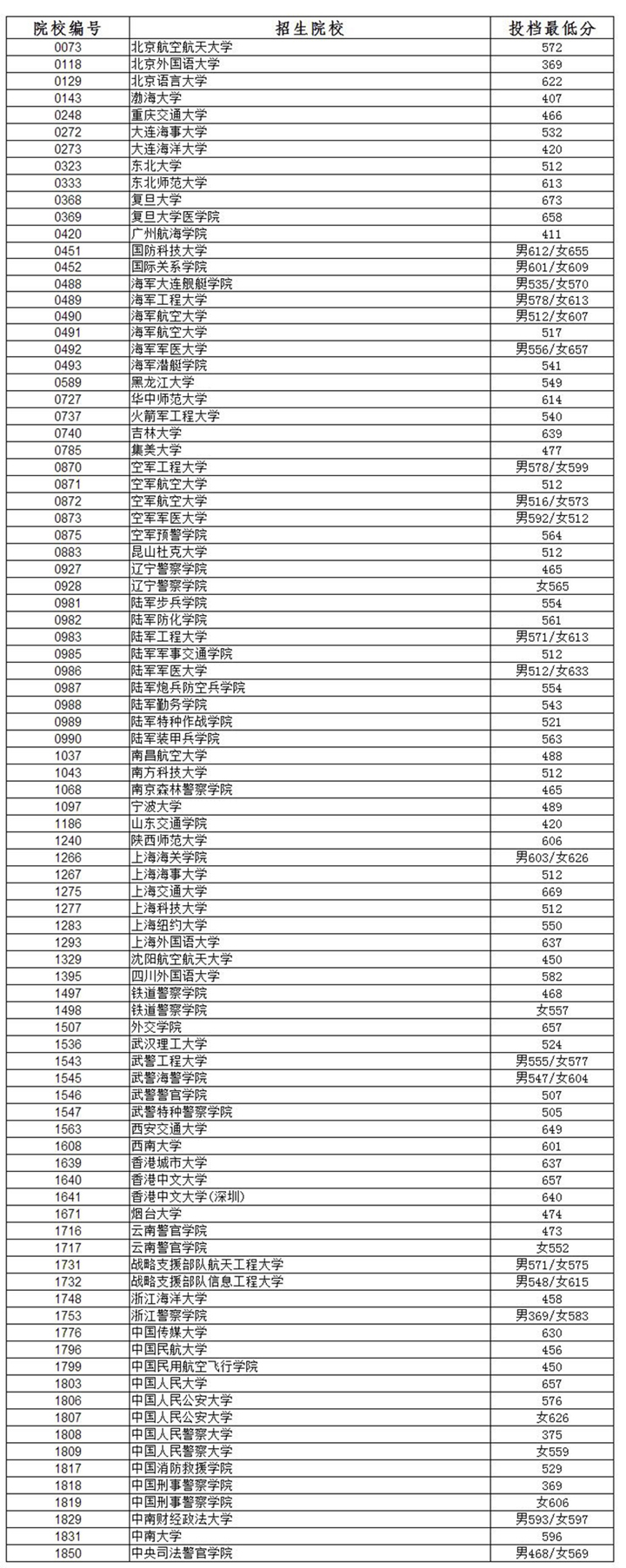 普通本科提前批第一次投档最低分发布说明:普通类本科提前批根据考生志愿、高考成绩和高校招生计划等,按照顺序志愿进行第一次投档,高校按照招生章程规定进行录取。第一次投档未完成招生计划的高校,依据相关规则予以补充投档;军队院校投档考生须为参加统一组织的政治考核、面试和体检且结论均为合格的普通高级中学应届、往届毕业生;公安院校公安专业投档考生须为参加统一组织的面试、体检、体测及政治考察合格的普通高级中学毕业生;中国消防救援学院投档考生须为参加政治考核、体检、心理测试、面试且结论均为合格的普通高中应届、往届毕业生;投档到飞行技术专业和航空飞行与指挥专业的考生须面试、体检、政治审查合格;综合评价招生院校全部有志愿考生均予投档,院校依据考生综合成绩进行录取。投档后,考生录取需要经过学校阅档、审核等一系列程序。