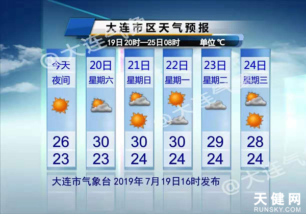 预计大连周六晴转多云,南部地区最高气温30℃—32℃,北部地区可达34℃左右,陆地东北风转西北风4—5级,闷热不会随着阳光减少而削弱,反而还会有所升级,大家要注意防暑。周日多云转晴,西北风转西南风4—5级,气温和周六相比基本没什么变化,头伏将在暑热中完美收官。