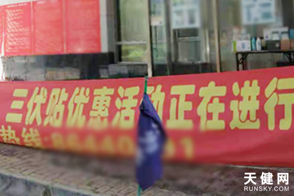 泉水一小区内小儿推拿诊所贴出三伏贴条幅