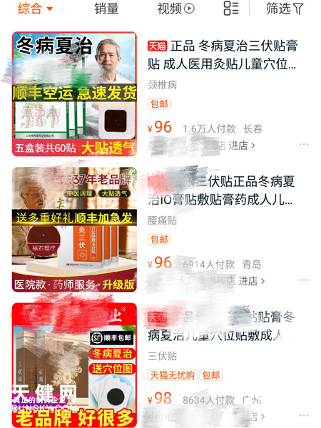 电商平台销售三伏贴上百种