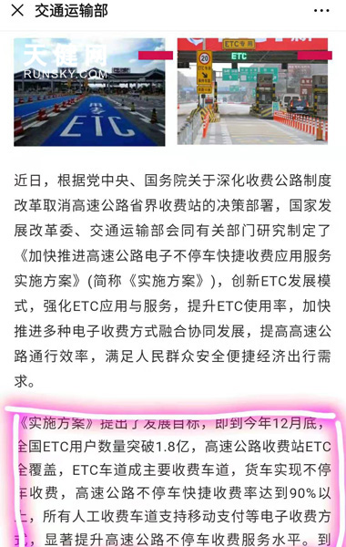 《加快推进高速公路电子不停车快捷收费应用服务实施方案》内规定内容被误解