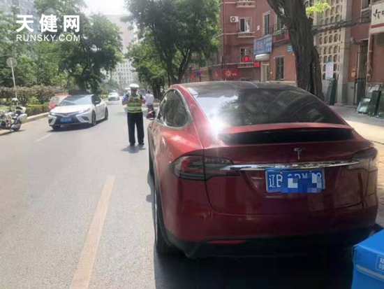 交警对违停车辆进行处罚