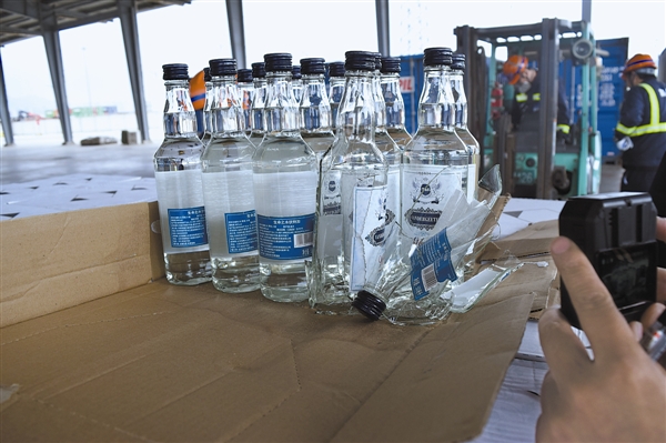 经核查,该货物为酒精度96%的瓶装伏特加,共计2.4万余瓶,总重量达11吨,属于高度易燃液体,除未按要求使用Ⅱ类危险品专用包装外,也没有满足国际海运危险货物运输规则的限量标准和标识要求。现场开箱检查时还发现,由于未按要求进行包装,瓶装伏特加在运输过程中存在破损情况,漏液在夏季高温下危险性大大提高,如果在存放的危险品货场发生燃烧,后果不堪设想。
