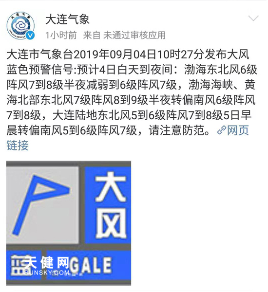 大连气象发布大风蓝色预警信号