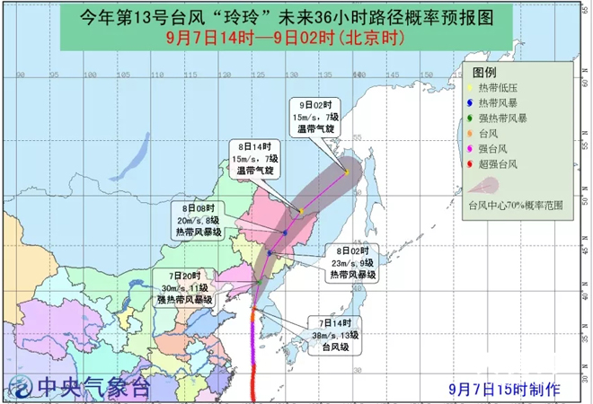 天健网消息(记者 王煜)好消息来了!台风“玲玲”在来东北的路上急刹车东移至朝鲜!9月7日,记者从中央气象台了解到,第13号台风“玲玲”7日上午由强台风级减弱为台风级,其中心下午1点50分前后在朝鲜黄海南道西南部沿海登陆。“玲玲”虽然身躯比较庞大,但是“飞毛腿”式的移动速度远快于预期,再加上移动路径向东偏移,因此今天我市的降雨远少于预期。