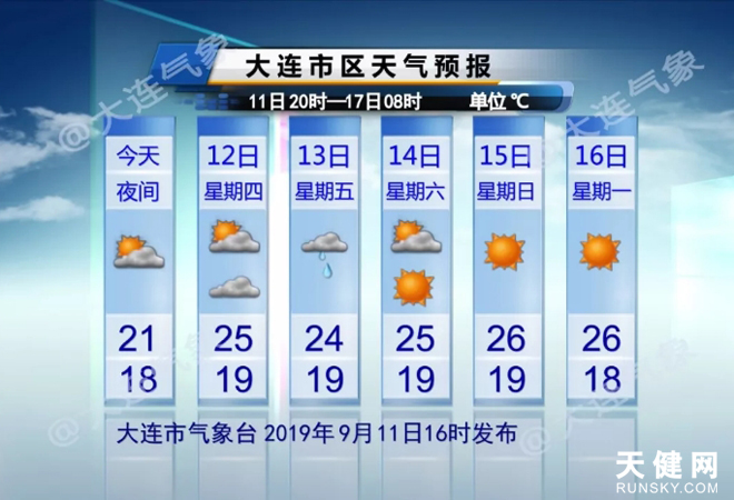 天健网消息(记者 王煜)赏月是中秋佳节必不可少的“节目”,可是今年中秋节当天天气不给力,小伙伴们想看到明亮皎洁的月亮怕是有点难。周五大连地区将迎来降雨,预计南部地区小雨到中雨量级,北部地区雨量偏大一些。伴随而来还有偏北大风,早晚温度较凉。中秋小长假后两天的天气不错,大家可以安排一些户外活动。