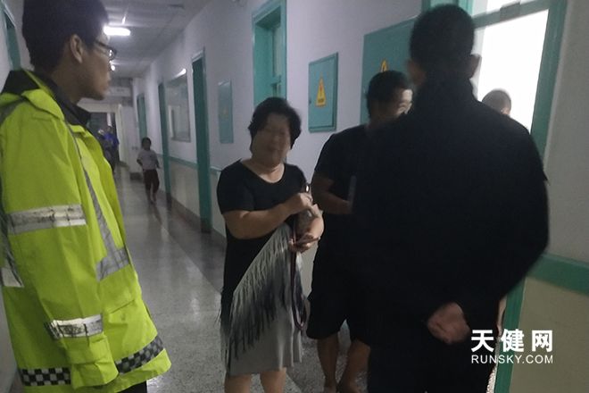将孩子送至医院后 交警在一帮守候等待诊疗结果