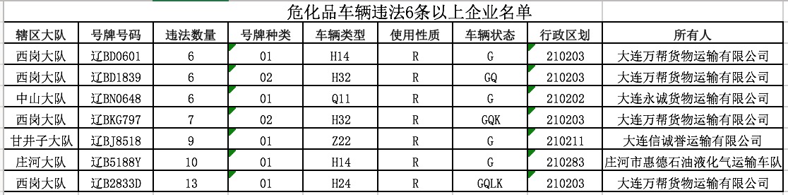 天健网消息(记者 丁一)9月18日,记者自市交警部门获悉,为强化运输企业安全监管,建立重点企业“红黑榜”,近日,交警部门结合我市运输企业管理的实际情况,梳理了车辆违法数量较多的“两客一危一货”(重型货车)企业(公路客运按照违法3次(含3次)以上的、旅游客运车辆违法6条以上的、危化品车辆违法6条以上的、重型货车违法满30条的),给予实名曝光。