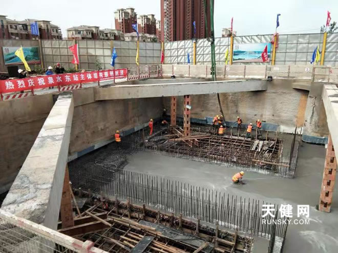 泉水东站的车站长154米、宽21.9米,车站结构为地下三层(部分四层),地下两层岛式车站,是全线首个局部四层在建主体结构率先封顶的车站。车站开挖深度平均深度31米,最深度达到33米,相当于11层楼高。07标项目部现场施工负责人王洪毅介绍,泉水东站存在三大施工难点:一是开挖深度高,施工风险大,尤其是33米开挖深度,使得基坑支护风险大。二是由于车站旁边是油气管线,对施工生产安全管理要求极高。三是车站东北角是公租房小区,人口居住密集,对施工中的环保也有很高的要求。