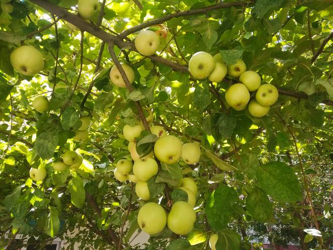 援疆楼驻地院子里的苹果树是援疆干部亲手栽种的,如今已硕果累累。