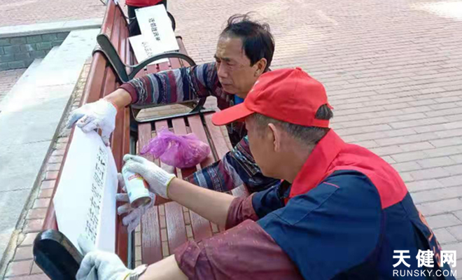 16日上午,党员管家小组将辖区内的“孝慈长椅”全部刷漆、检修固定,还喷绘上“尊老爱幼 奉献爱心”、“邻里和睦 互相帮助”等宣传语,89把“孝慈长椅”焕然一新。