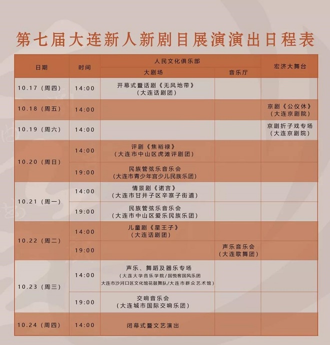 相关链接:三年一届的大连新人新剧目展演是大连凝聚艺术创作力量,助力艺术创作,提携艺术新人的重要平台,也是大连舞台艺术作品和艺术新人走向全国、走向世界最先亮相的舞台。一大批从新人新剧目展演舞台上崭露头角的青年演员在我市重大艺术创作及演出活动中担当主力并在国内外获奖。