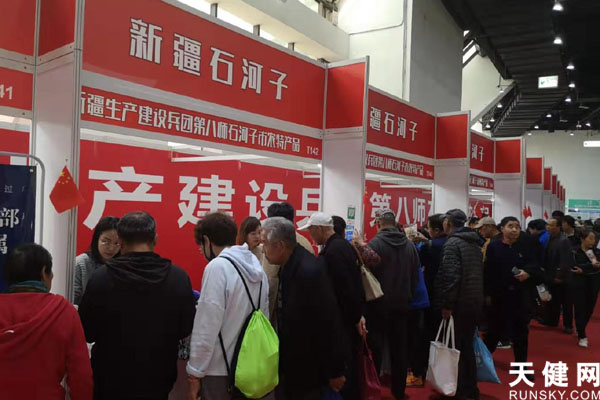 八师石河子市农特产品展区前聚焦了大量市民