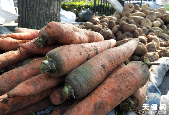 胡萝卜:表皮光滑很重要。胡萝卜需挑选表皮光滑,色泽橙黄,粗细大小均匀一致,没有伤口和虫眼的。