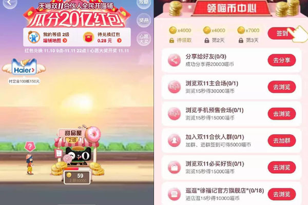 天健网消息(记者 葛春家)“双十一”临近,各大平台的“双11”预售纷纷开启,刚刚过去的这几天,很多人都深陷于“快帮我盖楼,你也能获得喵币升级喵铺哦~”这样的“双十一”活动链接包围之中。