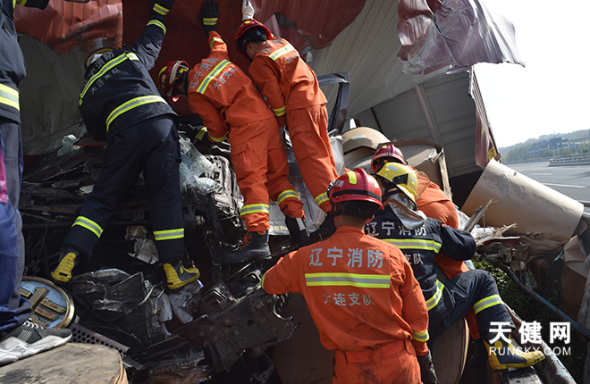 高速突发车祸两人被困 消防员紧急救援