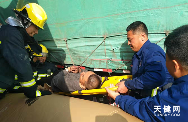 消防员营救被困人员