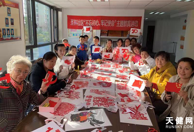 活动中,社区还邀请了剪纸、传统布艺和吹糖人三位民间非物质文化遗产传承艺人现场展示,并与居民热情互动。剪纸老师现场手把手教居民和孩子们剪出神圣庄严的党旗和国旗;传统布艺老师教孩子们做布艺小桃子;吹糖人老师为大家吹起活灵活现的十二生肖。