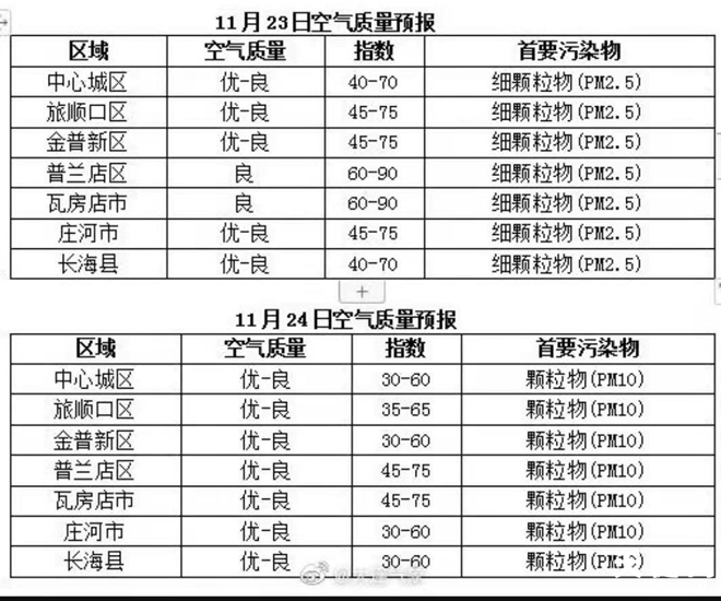 虽然天气很糟糕,但是空气质量很优良。预计11月23日,空气质量优-良,空气质量指数45-75,首要污染物为细颗粒物(PM2.5)。11月24日,空气质量优-良,空气质量指数30-60,首要污染物为颗粒物(PM10)。