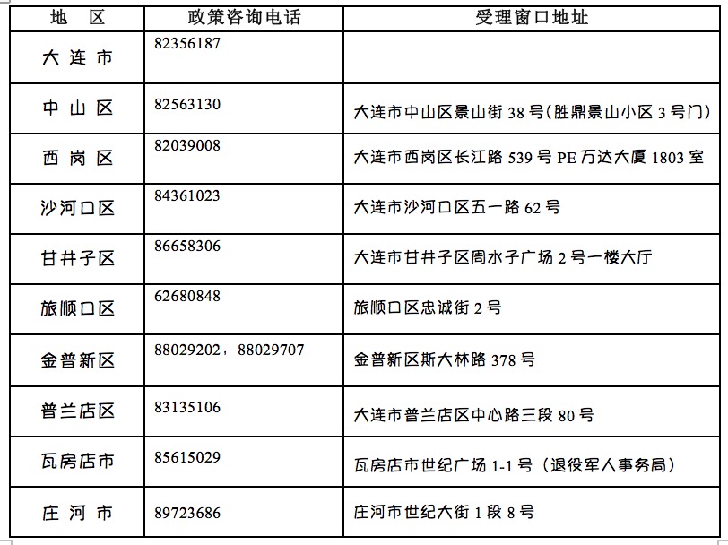 为使符合政府安排工作条件的退役士兵办理保险接续事项方便,现将全市政策咨询电话和受理窗口地址公布如下: