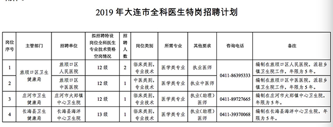 找工作吗?大连公开招聘5名特设岗位全科医生