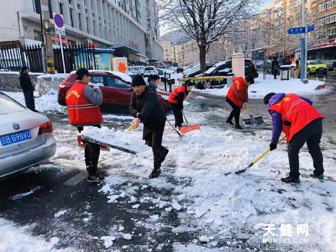 中山区各街道迅速行动,及时发动楼院,沿街各商户,落实门前“三包”除雪责任,组织街道工作人员对三四极道路和偏街背巷坡弯路洒布融雪剂,确保居民除雪安全。