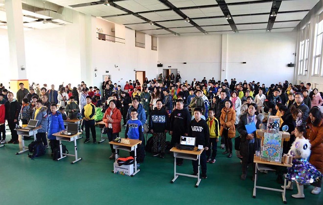 沙河口区第三届校园创客文化节“学科联动、智创共享”创客展评活动现场