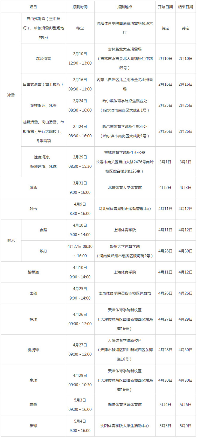 注:考试地点根据各省级招生考试机构安排,国家体育总局科教司于4月初另行公布,请考生关注“中国运动员文化教育网”和“体教联盟”APP。