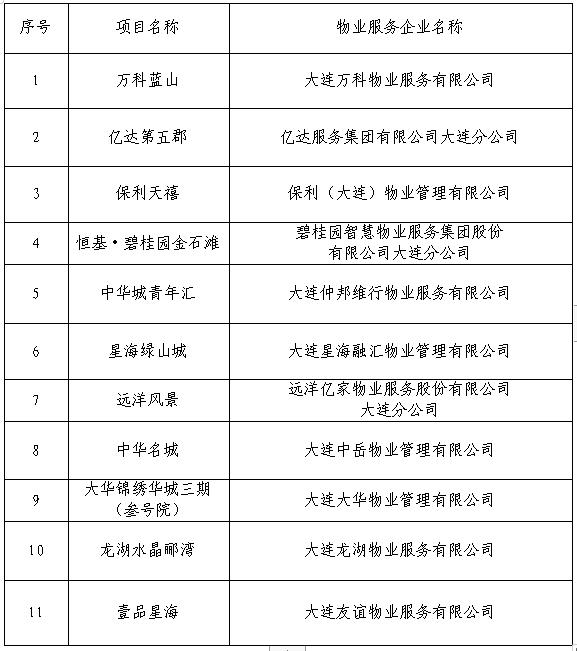 2019年辽宁省物业服务标杆项目名单(大连)