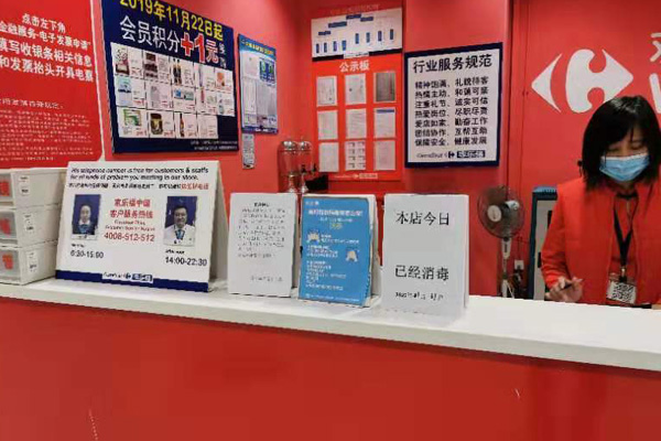 在这个特殊的时刻,李总毅然决然带领一线员工奋战在最前端。他每天早上7点多到店给管理岗位的人开会,强调防疫方面的安全知识和措施之外,还要对门店的消毒工作进行每日不下三次的巡检,从家乐福入口的顾客体温检测,到购物车购物篮的消毒,再到收银线和客用卫生间的消毒,这每一个地方都是李总必须亲自检查到的地方,他要确保提供给顾客一个安全的购物环境。除此之外,他还要确保货架上的民生用品货源是否充足,货架是否丰满?这每一个细节都体现出了他对顾客的用心。