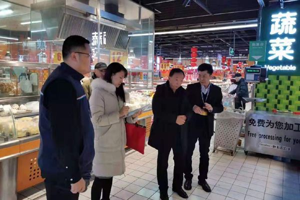 天健网消息(曲静媛 记者 葛春家)1月22日上午,针对大连目前疫情,大连市市场监督管理局领导到大连苏宁易购家乐福中山店进行检查,中山店李振波总经理全程陪同,并对店内“肉、菜、蛋”民生食品的贮存和价格、卫生情况进行了介绍,整体巡查领导们对检查结果非常满意,很是放心!