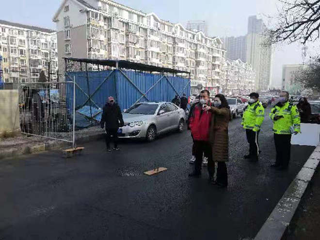 2月12日上午,福园社区。社区书记罗立在冷风中站了大半天,跟相邻小区的部分车主逐一解释封路的必要性。福园辖区是老旧小区,绝大多数居民楼没有物业,属于开放式散楼,她当日处理的这处位置,与另一社区辖区内一小区毗邻。在接到上级封闭要求后,福园社区在自己辖区所属这一侧设置了铁网,如此一来对面小区的车主出行就要稍微绕下路,不能借这处近道,“其实绕不了多远,但车主不愿意,我们连拦了两天,两天都有人把铁网破坏,辟出道路。”罗立没办法,在现场向车主们一一解释,承受车主们的不理解,缓解他们的怨气。
