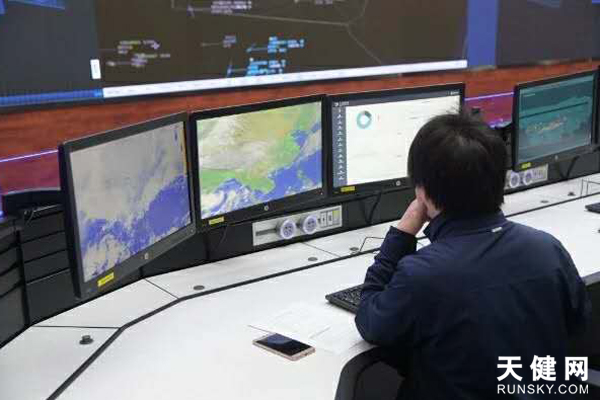 工作人员分析气象数据