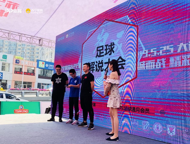 活动现场,大连球迷自告奋勇现场进行足球解说。