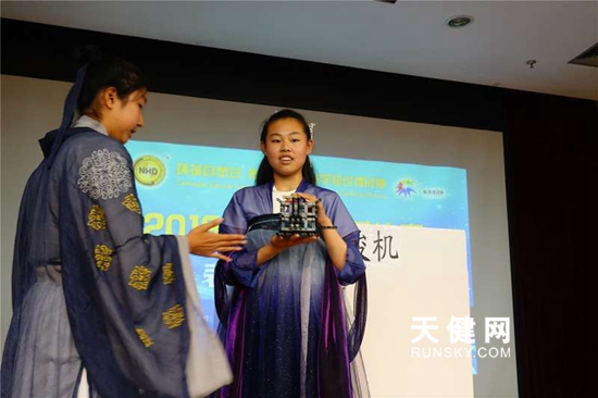 记者了解到,孩子的作品,有些是老师、父母帮助编写剧本,孩子们练习表演;有的则完全是孩子们自己独立创作剧本,结合自己平时掌握到的知识,通过奇妙的方式展现出来。“穿越”就是孩子们喜欢的形式之一,许多小选手的表演都融入了穿越剧情。《大禹之穿越治水》让相隔两千年的现代人物和大禹同台对话。四十四中学的焦贺迪、孙纳佳则制作了时空穿梭机,回到了古代与张衡对话,又进入白垩纪看到了恐龙。与穿越时间不同,还有两位小选手则是穿越空间,一觉醒来到达了北极,与北极熊开启了一场保护环境的大讨论。环保可谓亘古不变的主题,雾霾、厄尔尼诺现象,海洋垃圾、地球沙化都是孩子们关注的焦点问题。保护黄河、保护藏羚羊、保护鲸和鲨、保护海洋都是孩子们最终的希望。