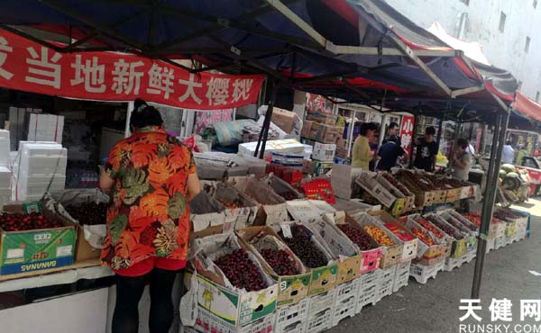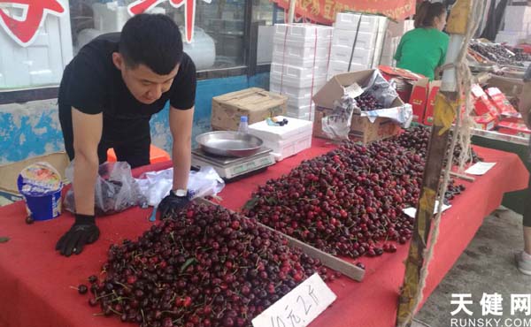 批发市场大樱桃、桃子、杏等时令水果新鲜便宜成主力军