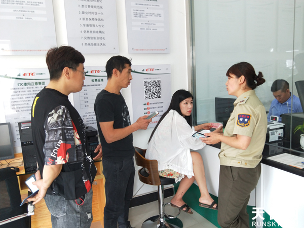 在后盐高速口的大连站ETC服务中心,霍先生和爱人一起来办理ETC辽通卡,霍先生把身份证原价和车辆行驶证原件递交给工作人员,等时两分钟,辽通卡办理完毕。等时期间,霍先生用手机扫码下载辽宁高速通APP,通过这个APP便可线上实现充值。