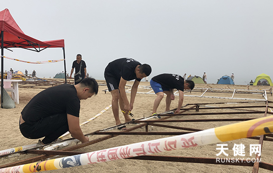 上午10点,在付家庄公园海水浴场内,几名工作人员正在忙碌地为遮阳棚棚体除锈,以便稍后进行安装。据悉,为满足未带遮阳帐篷伞具的游客亲海需求,今年公园依旧会在沙滩上摆放60组3*6米的免费大型遮阳棚,自西向东摆放,可容纳游客2000人左右。