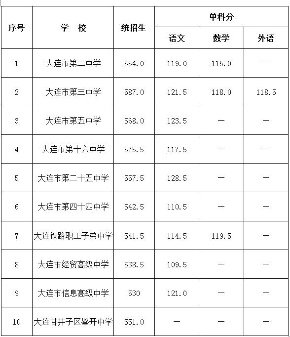 天健网消息(记者 金东淑)大连市 2019年市内五区普通高中录取工作已经结束,刚刚,大连市教育局公布市内五区普通高中录取分数线如下: