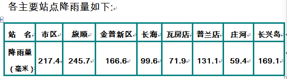 截至12日08时,有4个气象站出现特大暴雨,有108个气象站出现大暴雨,有90个气象站出现暴雨。全市平均降雨量为111.6毫米,最大降雨量出现在市区龙王塘街道,为309.3毫米,一小时最大雨量出现在旅顺三涧堡街道,为36.0毫米(附图1)。最近1小时,市区以南小雨到中雨,其中瓦房店驼山乡降雨量最大,为17.3毫米(附图2)。