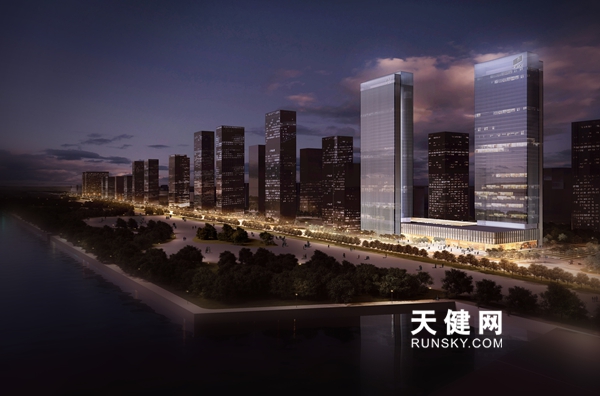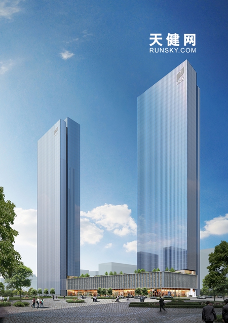 欧力士中国总部大厦效果图,项目总建筑面积约24万平方米,A、B两个区域
