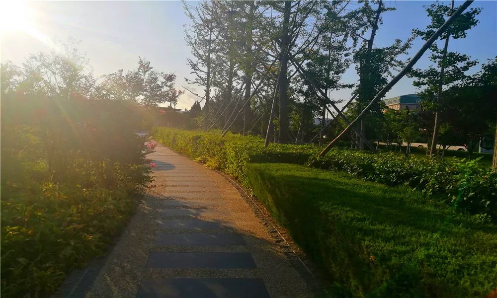 林荫栈道的一缕阳光格外耀眼。