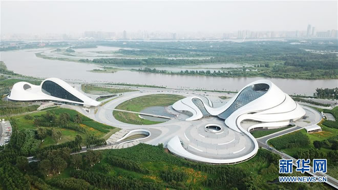 这是的哈尔滨地标建筑——哈尔滨大剧院(7月28日无人机拍摄)。