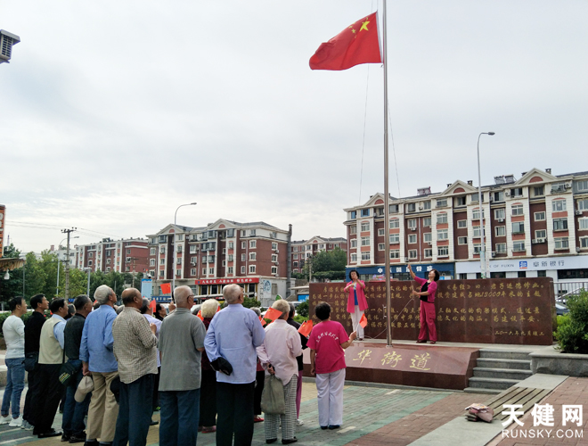 天健网消息(记者 王煜)为迎接新中国成立70周年,兴华街道兴强社区组织辖区党员、居民、访视员等在德园广场举行庄严的升国旗仪式。