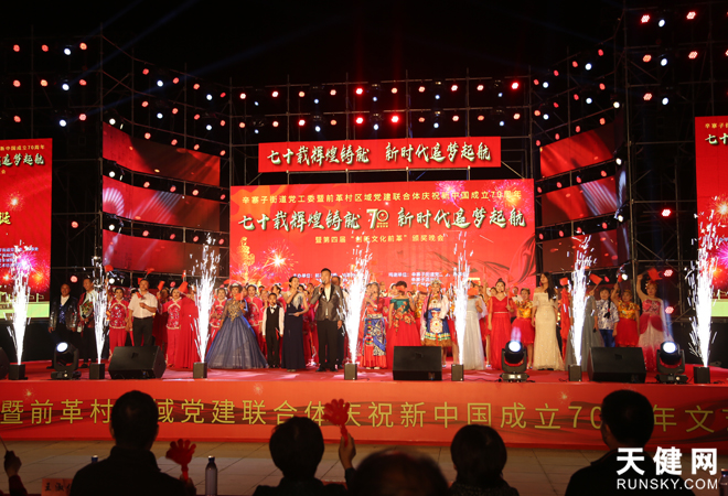 天健网消息(记者 王煜)9月24日,辛寨子街道庆祝新中国成立70周年暨第四届“创新文化前革”颁奖晚会在前革崇德广场隆重上演。区文体局、辛寨子街道党工委办事处的领导、前革区域党建联合全体成员单位、前革村商会及辖区居民等1500余人共同享受了一场精彩的文艺盛宴。
