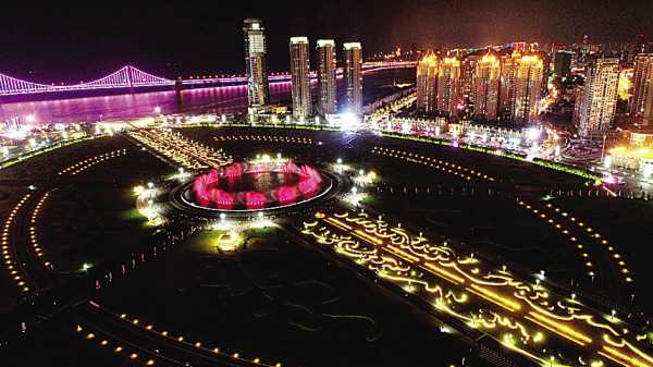 海军广场、中山广场、友好广场、希望广场、星海广场……化身一座座声光电的舞台,璀璨光影、悦目之景在夜里不停上演,这是大连在用最美的灯光对祖国说:我爱你!