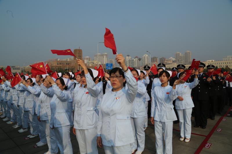 今天,在人民广场参加升国旗仪式的有各行各业的代表,有机关干部、警察、工人、学生,还有护士、快递员等行业群体代表。整个升旗仪式虽然时间不长,但却庄严、热烈、隆重,彰显了大连近700万市民庆祝新中国成立70周年的喜悦之情,表达了祝愿伟大祖国国泰民安、繁荣富强的美好心愿!